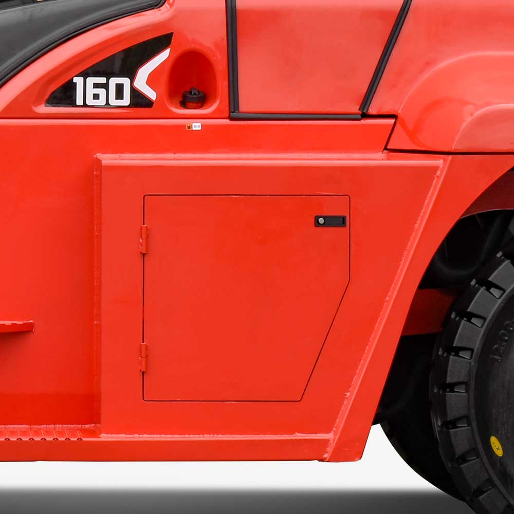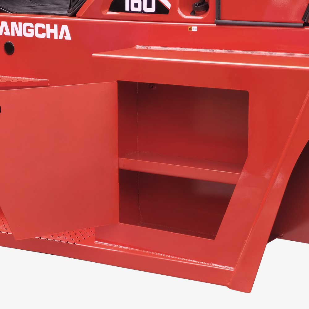 The upper surfaces of the large locked toolbox and counterweight on the left and right sides of the vehicle body are designed to be fully flat to enable a large storage space.