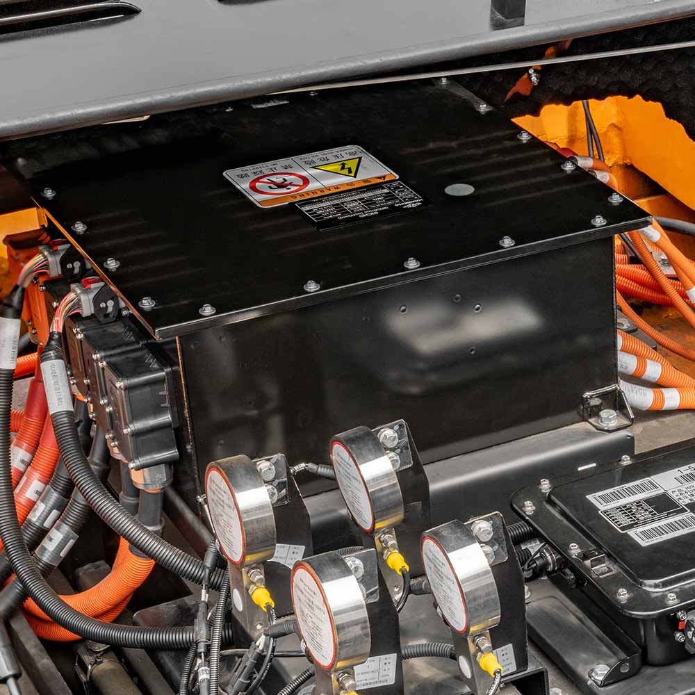 A high-torque permanent magnet synchronous motor provides strong power for the vehicle with performance indicators benchmarked against that of internal combustion forklifts.